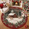 1 PC Christmas Faux Wool Round Rug - Non-Slip Stain Resistant Living Room Bedroom Carpet