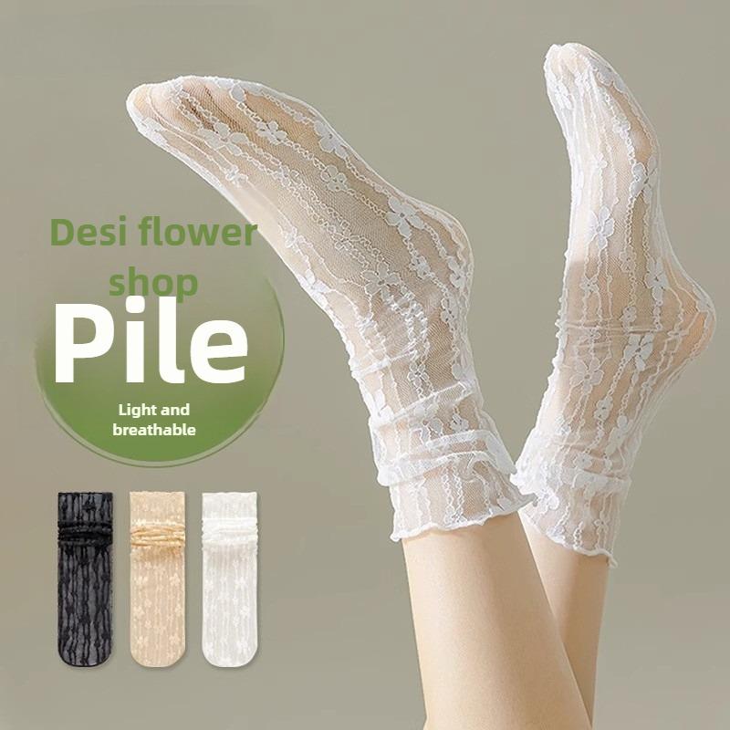 3 Pairs of Women's Summer Thin Lace Flowers In The Tube Pile Socks