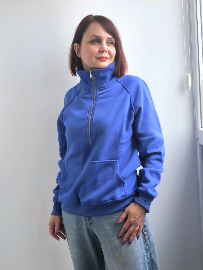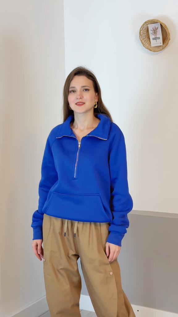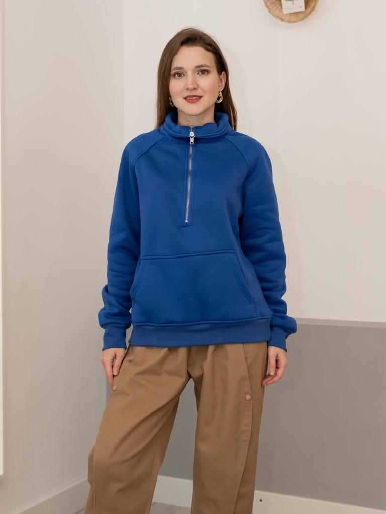 Stylish Pullover Design: Embrace comfort and style with this women's pullover sweatshirt featuring a semi-zippered neckline, long sleeves, and convenient pockets for added functionality.