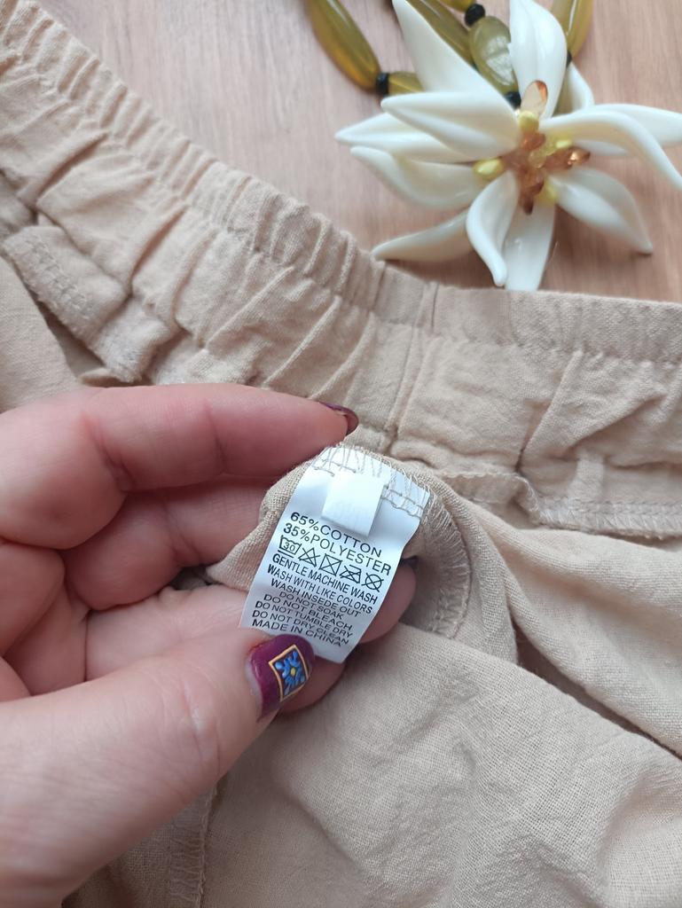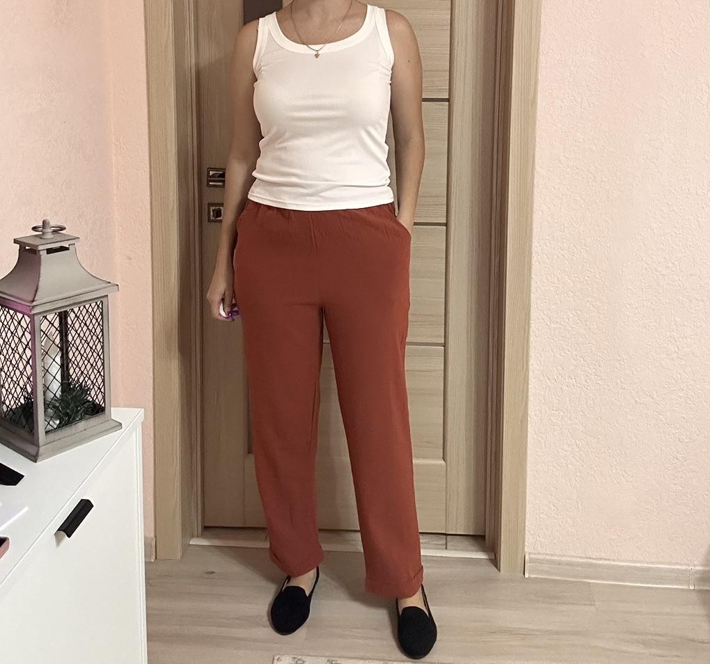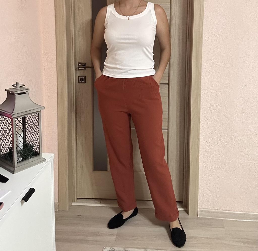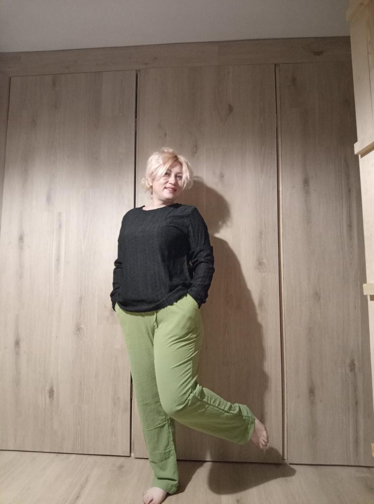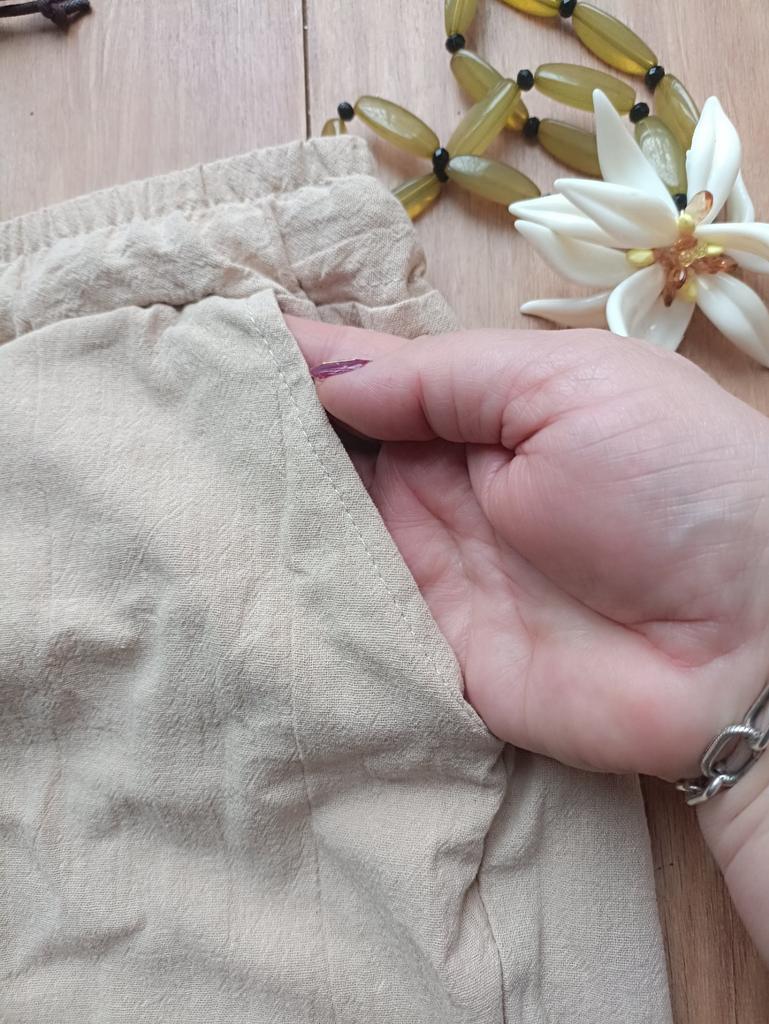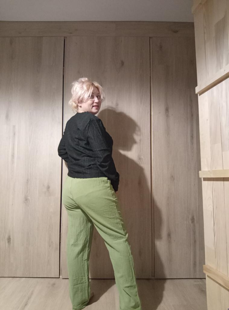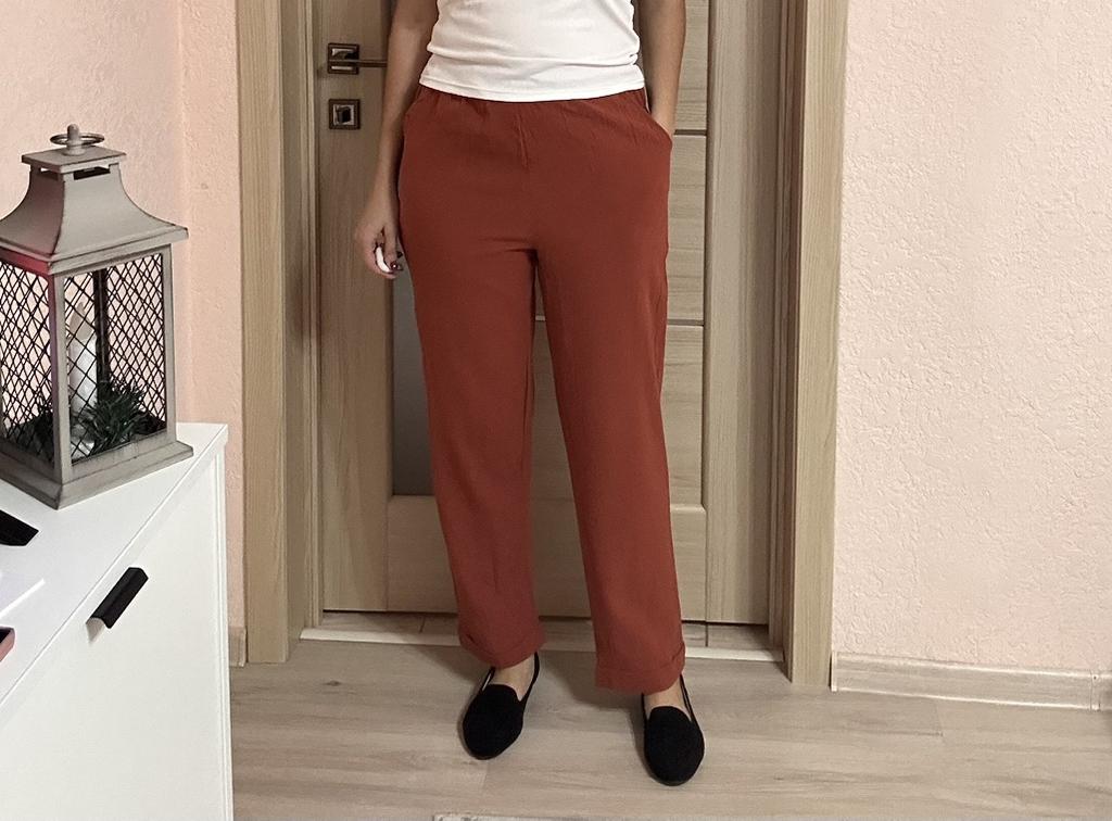 Super pants for Saturday at home 😊 Breathable, lovely color, they have pockets 😍 For me, those pockets are key. They are also very high-waisted pants, so you don't have to adjust them, they stay up nicely. The elastic, however, is very strong. If you don't like tightness around the stomach, it's worth taking a size up. :)