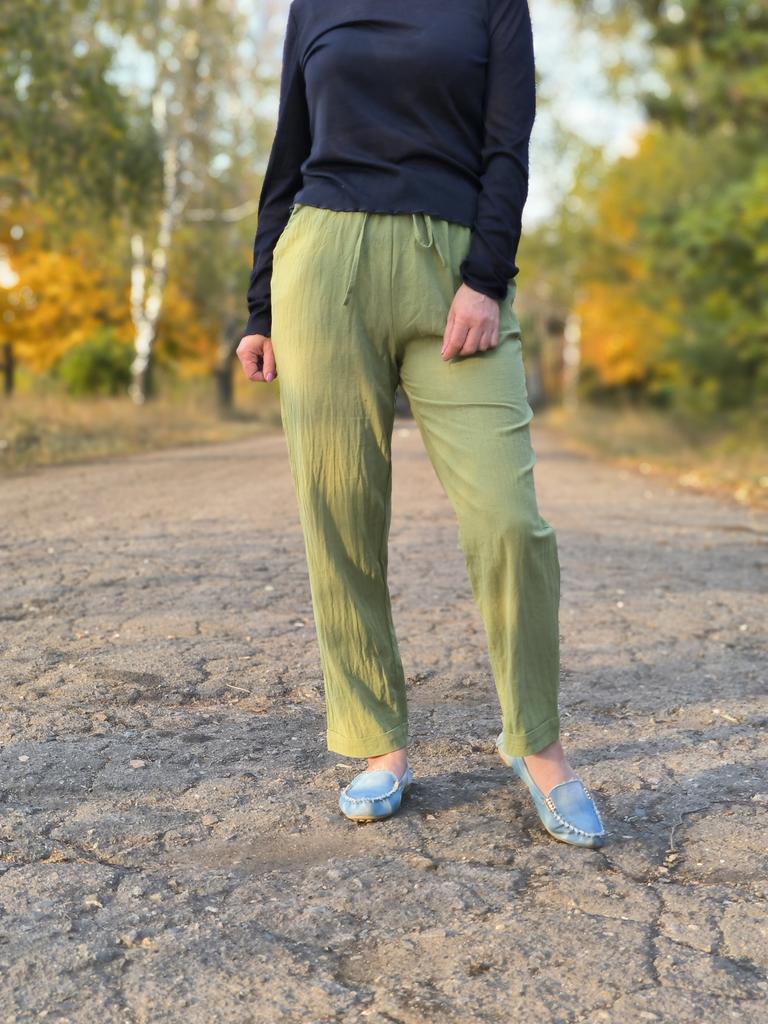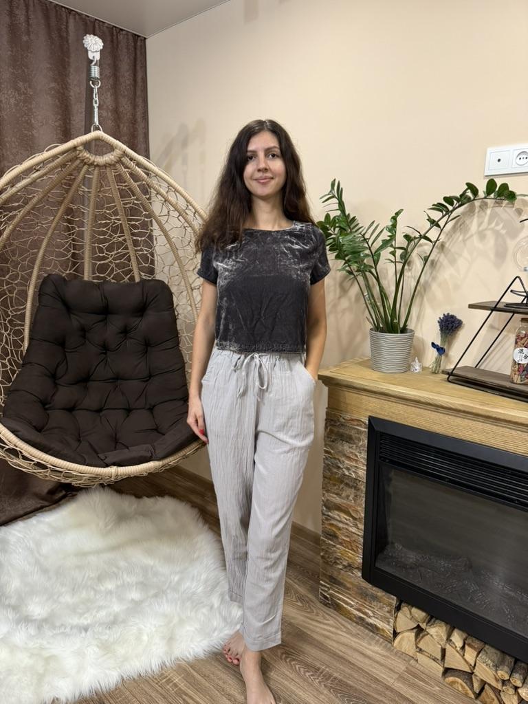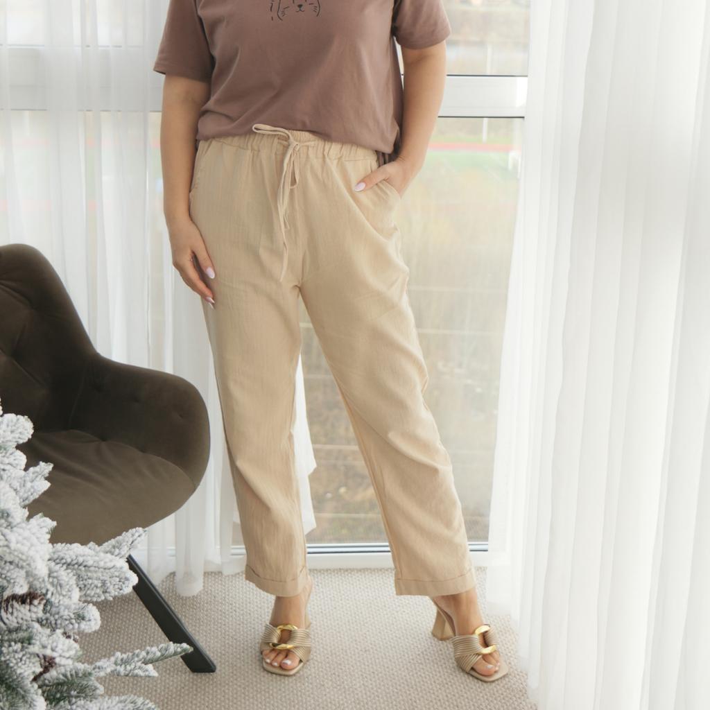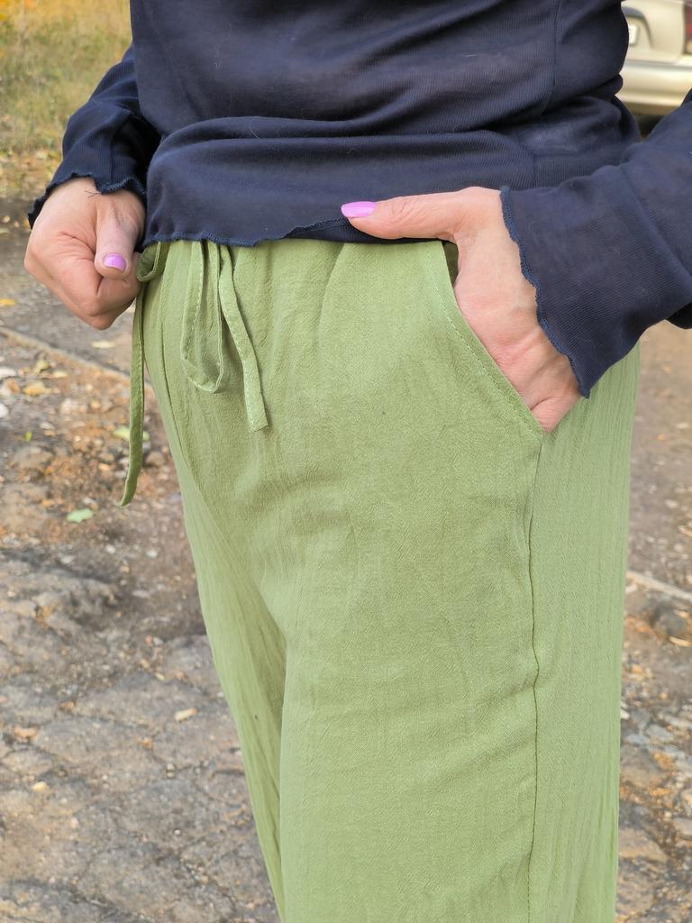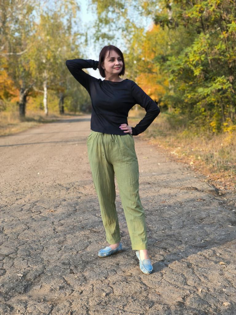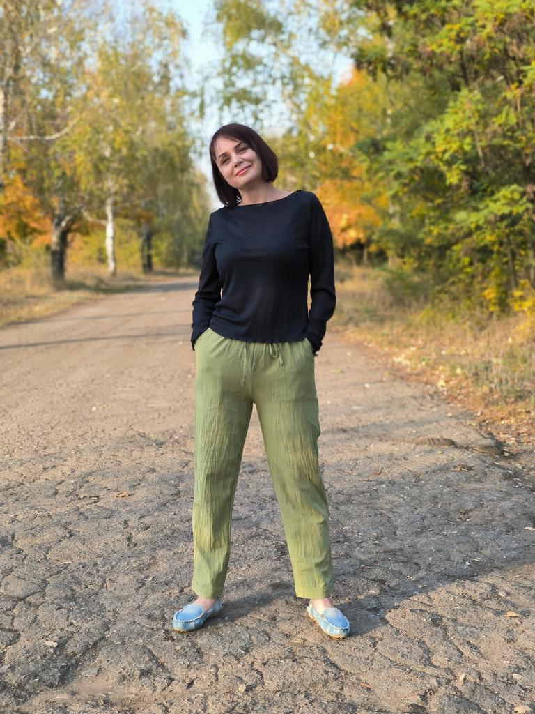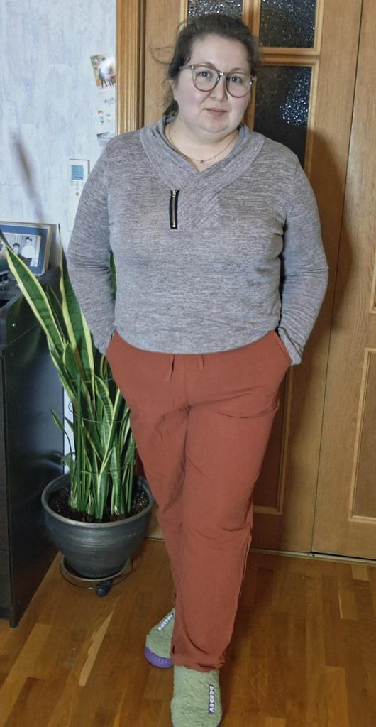 Super pants for Saturday at home 😊 Breathable, lovely color, they have pockets 😍 For me, those pockets are key. They are also very high-waisted pants, so you don't have to adjust them, they stay up nicely. The elastic, however, is very strong. If you don't like tightness around the stomach, it's worth taking a size up. :)