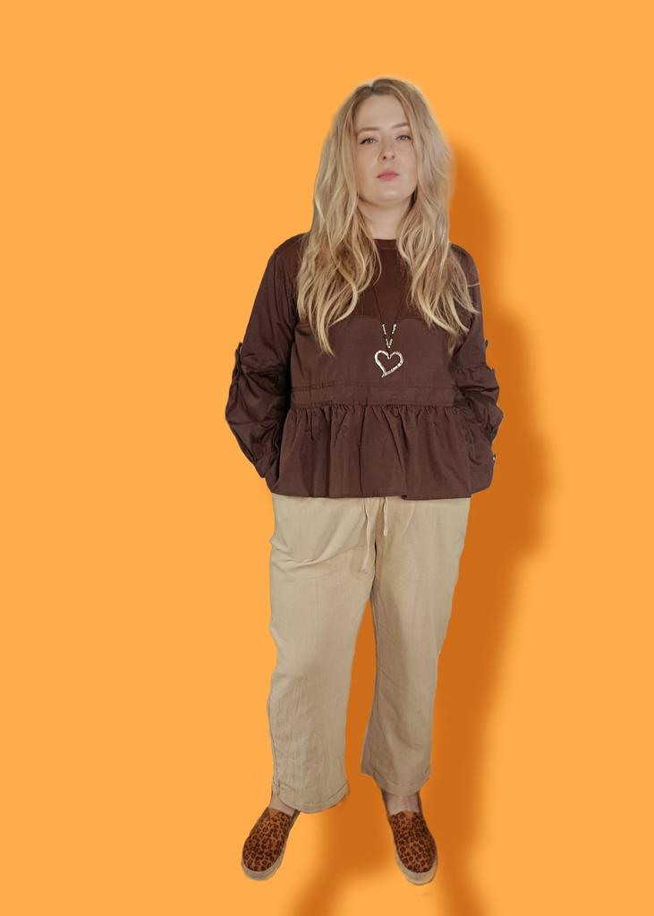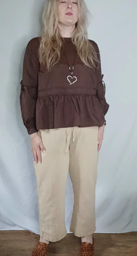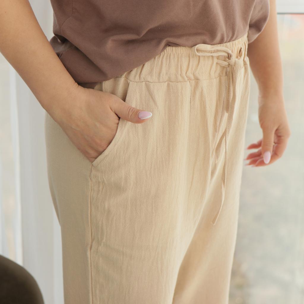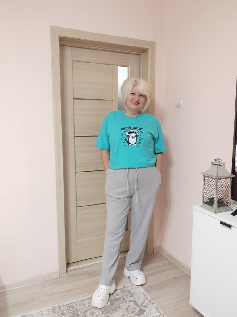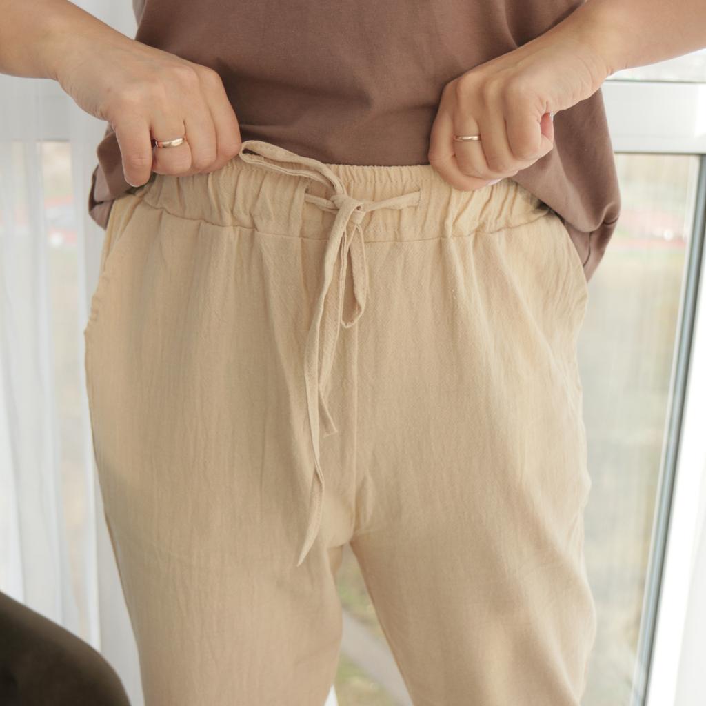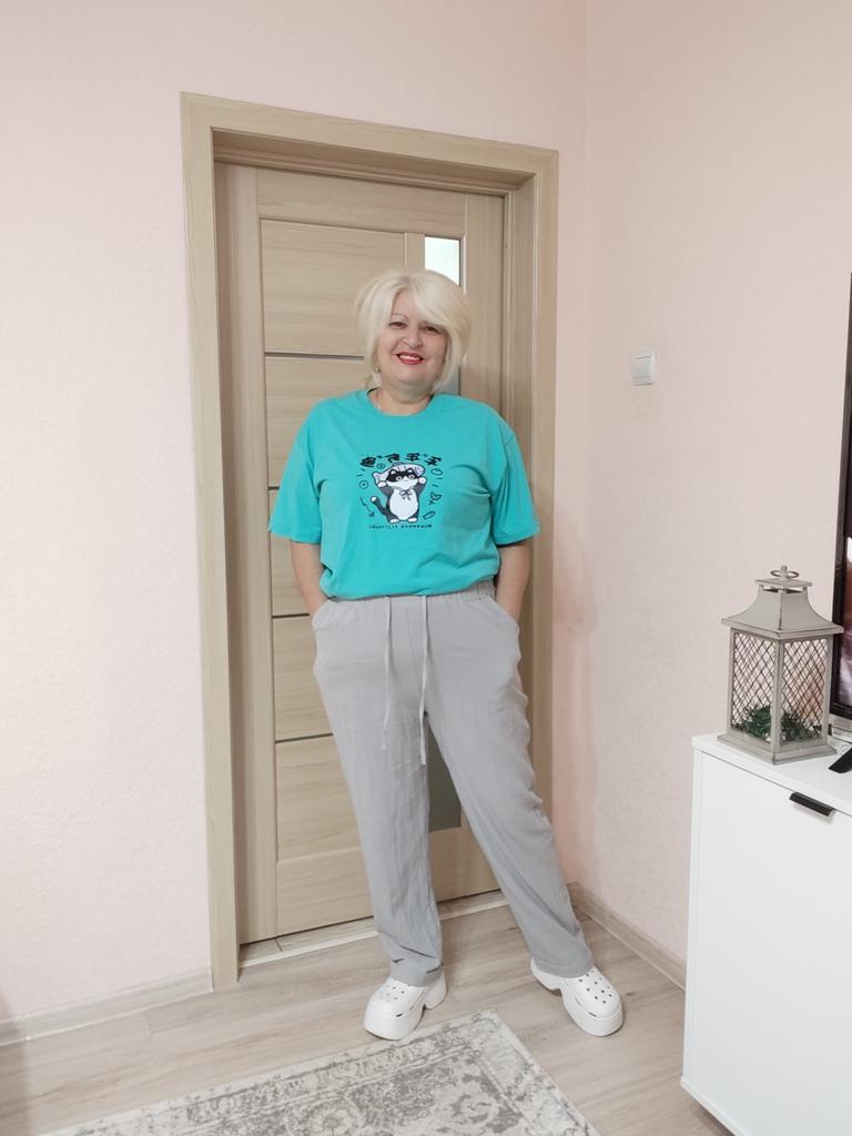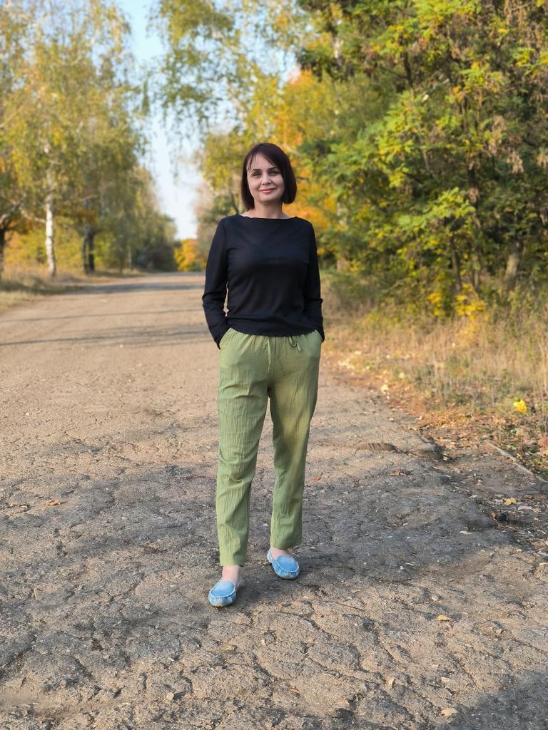 Super pants for Saturday at home 😊 Breathable, lovely color, they have pockets 😍 For me, those pockets are key. They are also very high-waisted pants, so you don't have to adjust them, they stay up nicely. The elastic, however, is very strong. If you don't like tightness around the stomach, it's worth taking a size up. :)