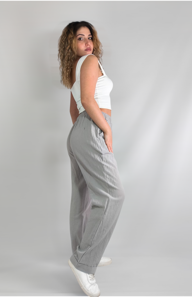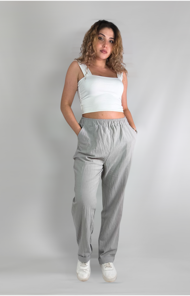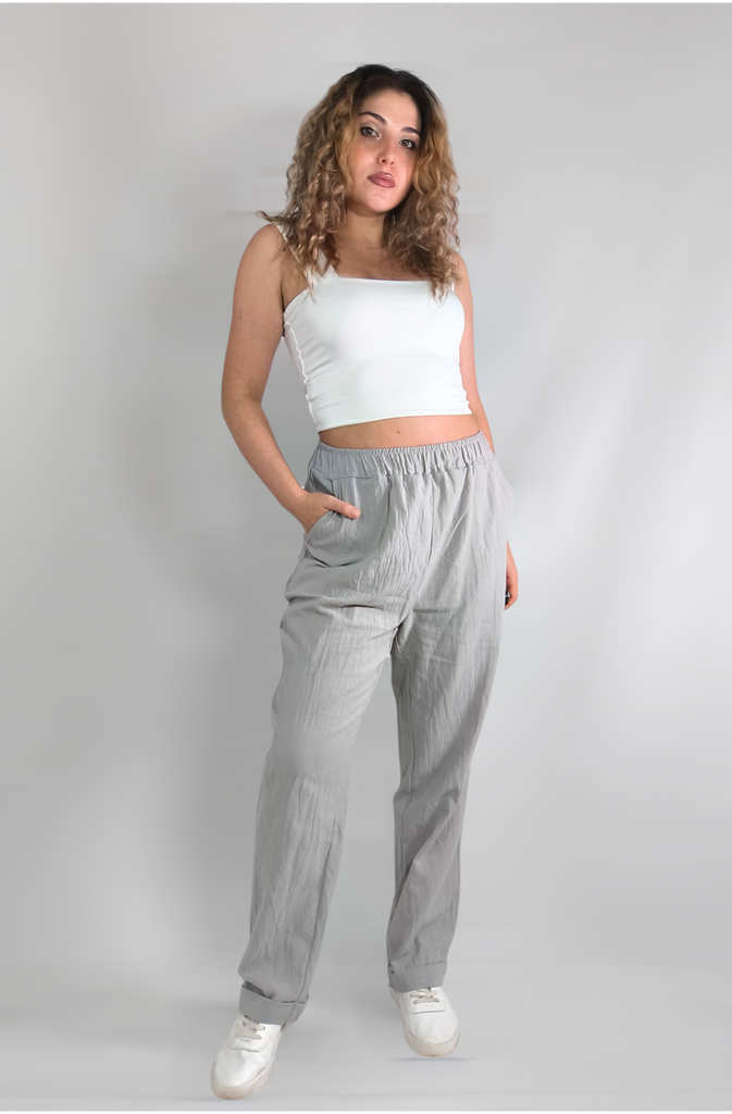 These trousers from the CANVAUS brand are a wonderful combination of comfort and style. With a high waist and straight cut, they flatter the body shape and are suitable for all seasons. The cotton material ensures a soft feel on the skin and breathability, especially for everyday or casual wear. The solid color design with a delicate print allows them to be easily combined with simple shirts or more special tops, so they can be adapted to events such as small parties, street walks, or just staying at home in style.. If you're looking for a lightweight and comfortable item for your wardrobe – this is an excellent option.