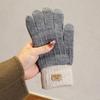 Camel Wool Knitted Gloves Women's Autumn and Winter Warm Outdoor Antifreeze Full Finger Gloves Piled and Thickened