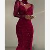 Mesh Patchwork Hot Drilling Dress Rhinestone Contrast Mesh Bodycon Dress