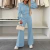 Women's Fashion Casual Home Solid Color Lapel Long Sleeve Top Elastic Wide Leg Pants Two-Piece Set