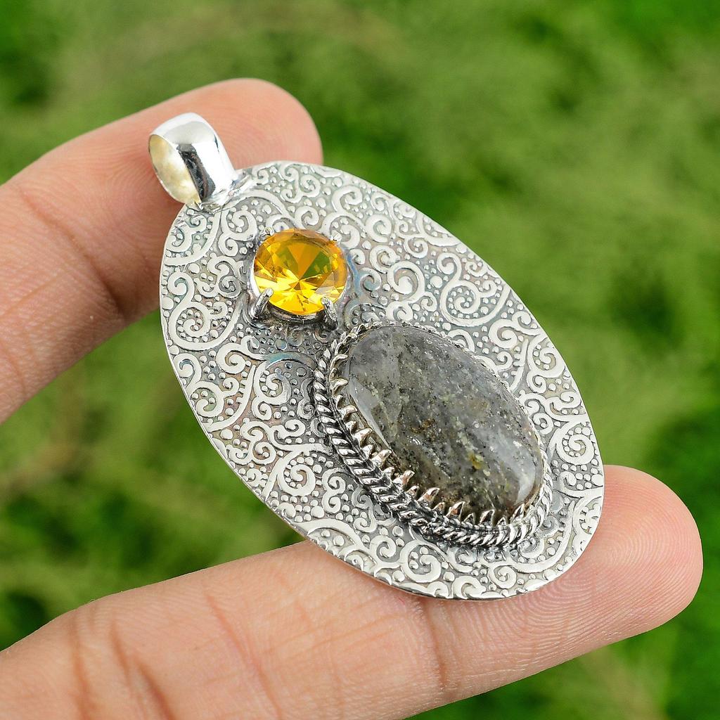 Daughters Day Sale Natural Black Sunstone Citrine 925 Sterling Silver Pendant