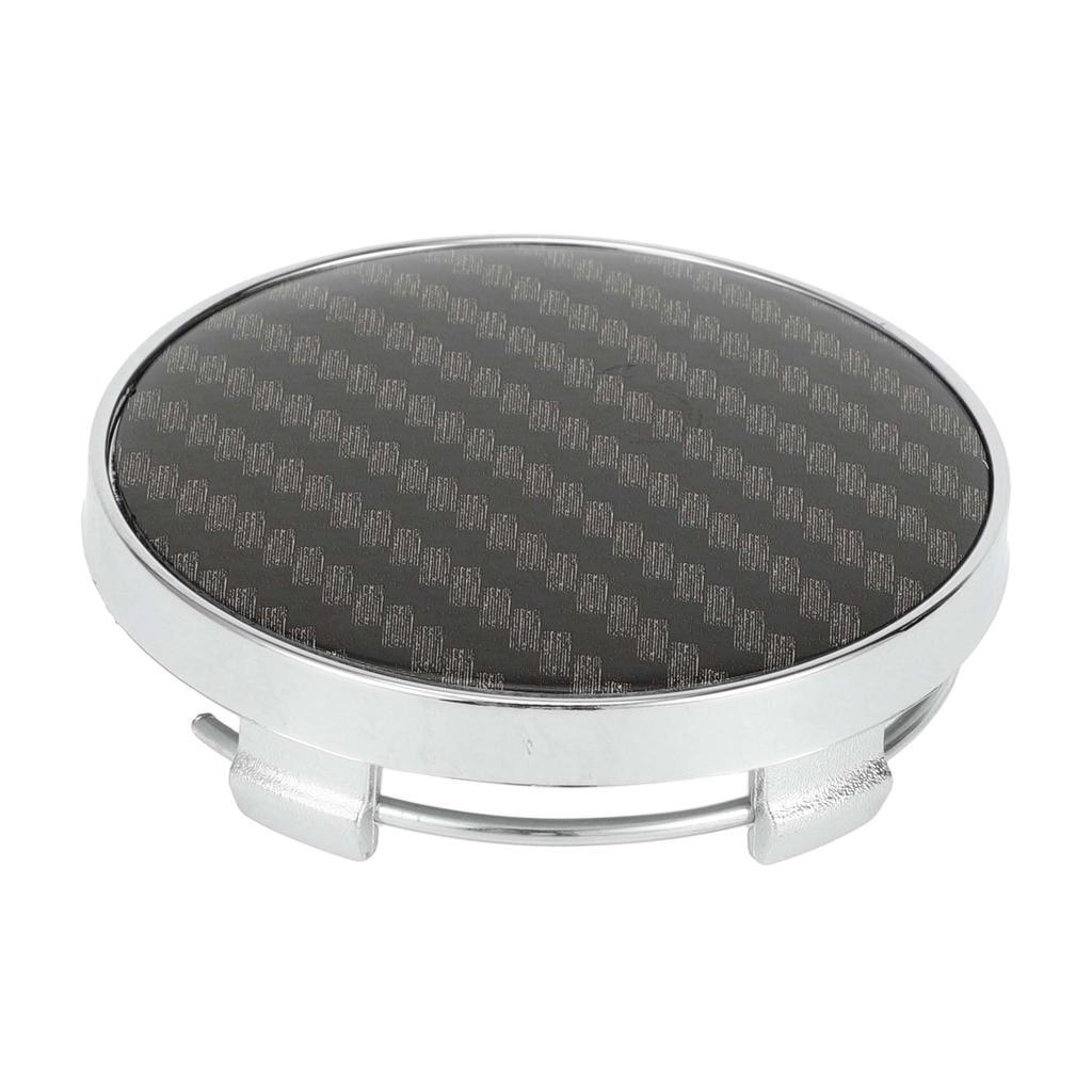 ACROPIX 60mm 2.36" Carbon Fiber Pattern Silver Tone Black Universal Car Wheel Hub Center
