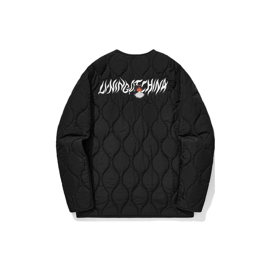 Li Ning Letter Print Loose Short Cotton Jacket Unisex Jacket Black AJMT077-2