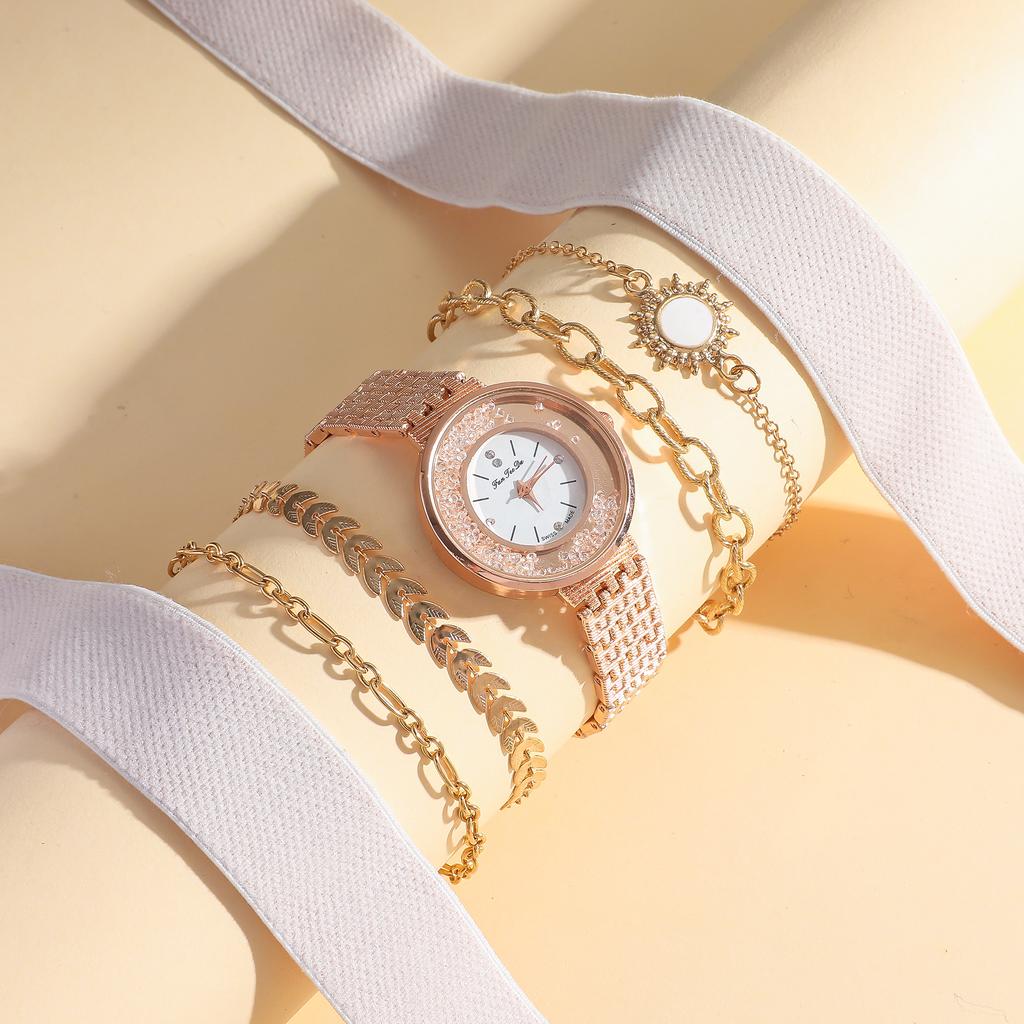5pcs/set; Simple and Stylish Ladies' New Diamond-inlaid Watch Necklace Set of Five, Suitable for Birthday Gifts
