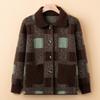Mom Dress Stylish Lapel Knitted Jacket for Women In Spring and Autumn New Loose Plaid Cardigan Grandma Thick Top