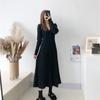Knitted Dress for Women In Spring Solid Color Casual A-line Long Dress Long-sleeved Casual V-neck Sweater Dress