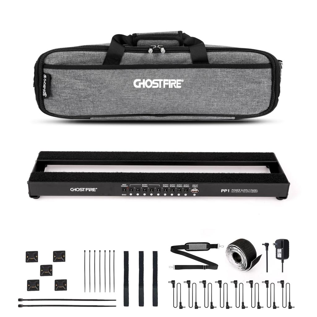 GHOSTFIRE Effects Board with Power Aluminum Alloy Guitar Pedal Board with Carrying 19 X Lbs Built-in Supply, Bag, Lightweight, 5.1 Inches, 1.5 (PP1)
