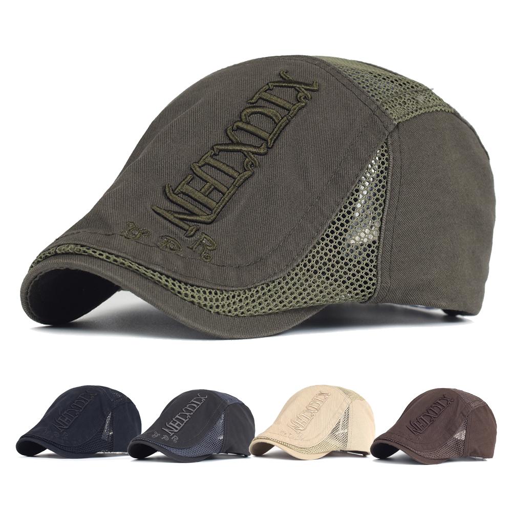 Spring Summer Mesh Cotton Newsboy Caps Men Casual Fashion Letter Beret Hat Golf Driving Cabbie Hat Flat Ivy Cap