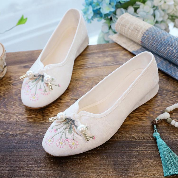 Fashion Oriental Aesthetic Pearl - Tassel Embroidered Wedge Shoes | Hanfu - Ready Vintage Court - Style Shoes