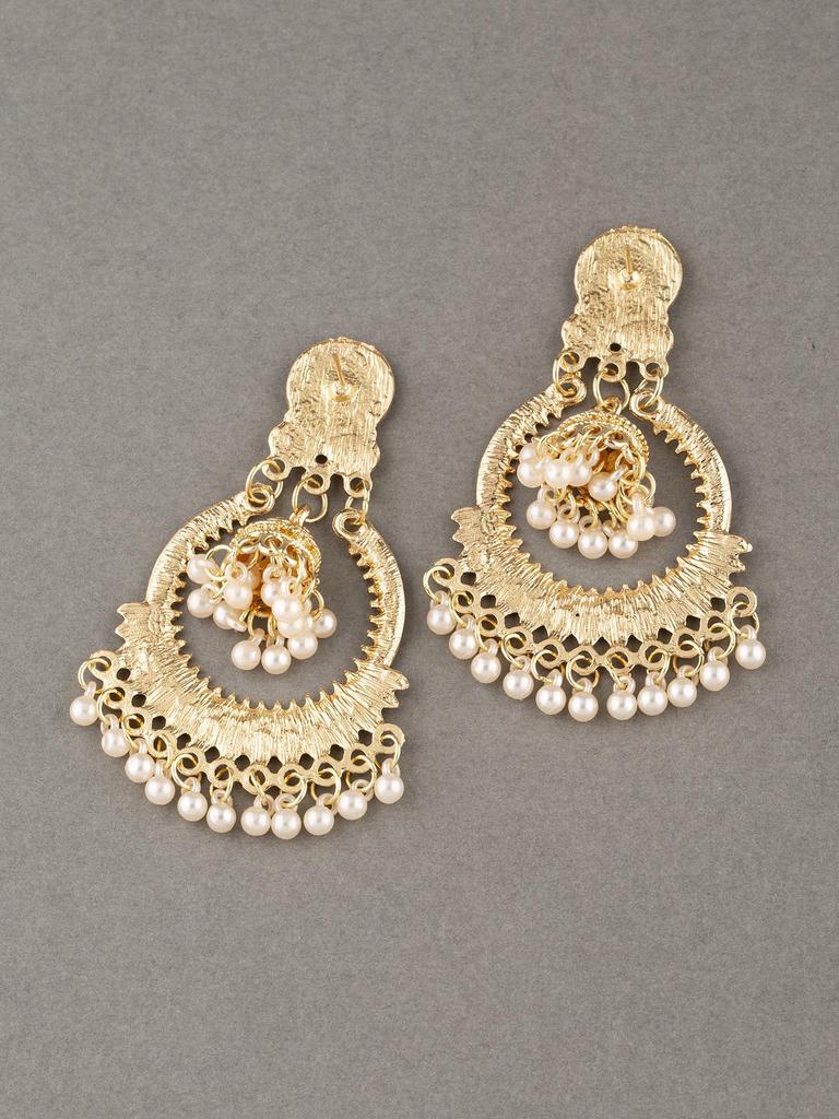 Bohemian Ethnic Style Pearl Earrings with Tassel and Bell Pendant