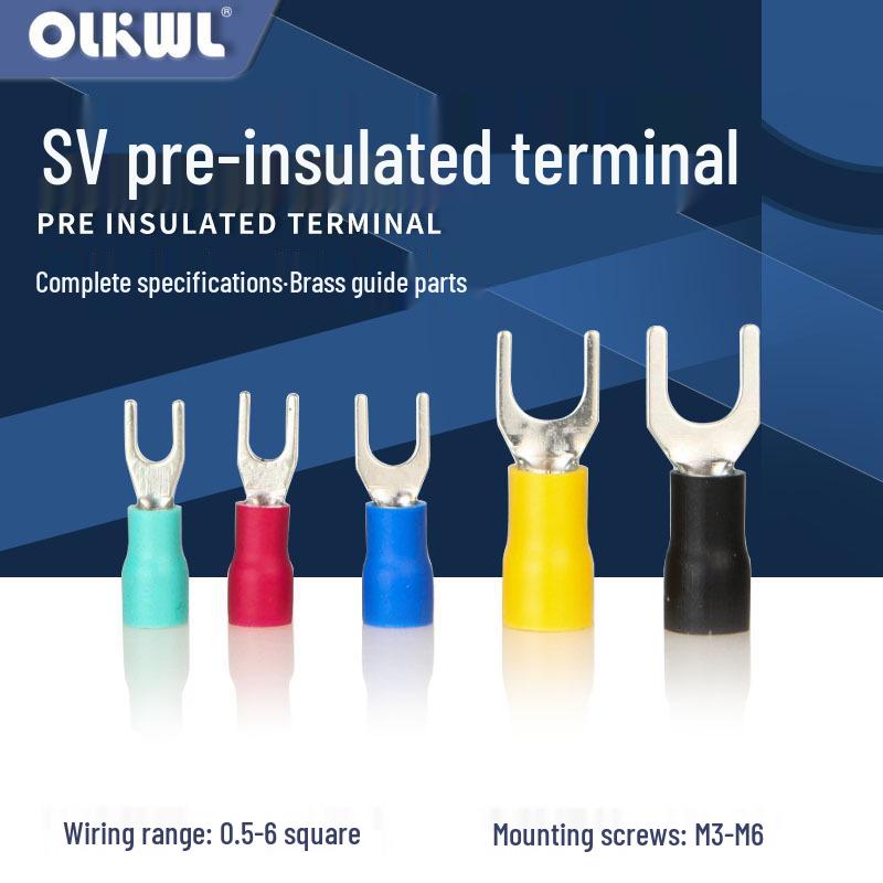 SV European Fork-Type Pre-Insulated Copper Crimp Terminals: SVS1.25-3.2/4/5, SV2-4/5/6 Wire Lugs.