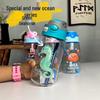 Dinosaur Cartoon Plastic Water Cup with Duckbill Straw for Kids - Portable and Perfect for School
