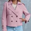 Women's Fashionable Casual Pocket Short Double Breasted Windbreaker Jacket