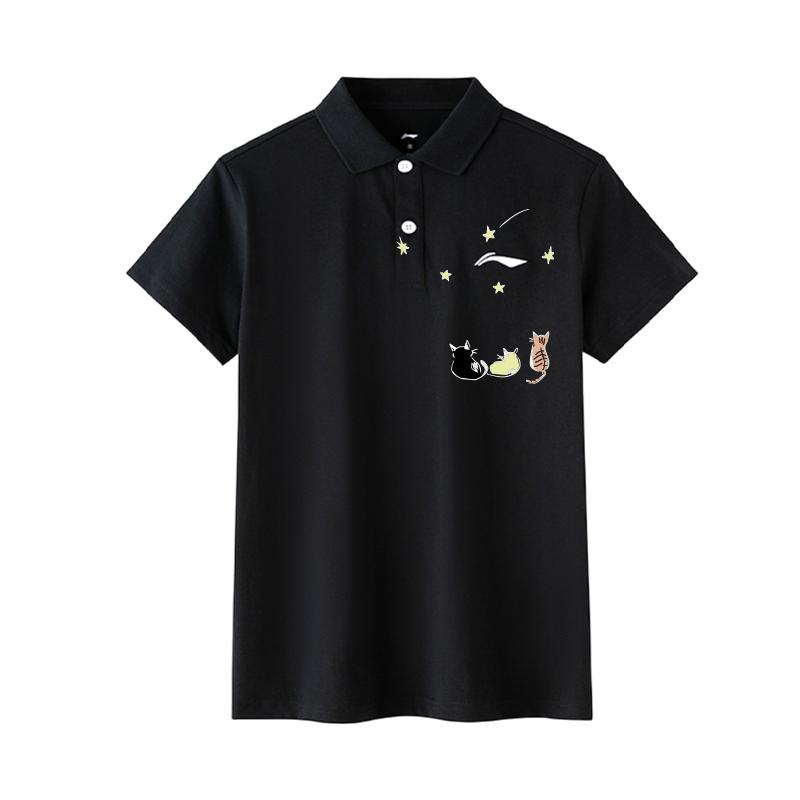 Li Ning Stars Daily Versatile Fashion Trendy Print Solid Color Breathable Casual Short Sleeve Polo Shirt Unisex Polo Shirts APLT137-1(TEAM702-A25)