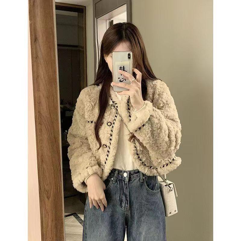 Imitation Lamb Wool Fur Jacket Women's Autumn and Winter Clothing Loose Short Small Thickened Top Women's Light