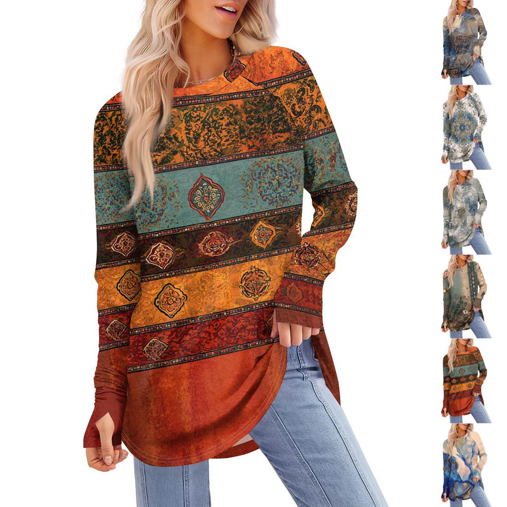 Womens Oversized Sweatshirt Graphic Sweater Long Sleeve Drop Shoulder Round Shirt Tops Vintage Clothes