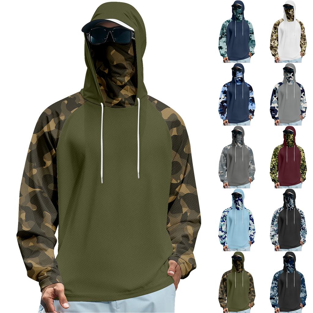 Unisex Solid Color Hooded Sweatshirt With Face Mask And Plush Raglan Sleeves