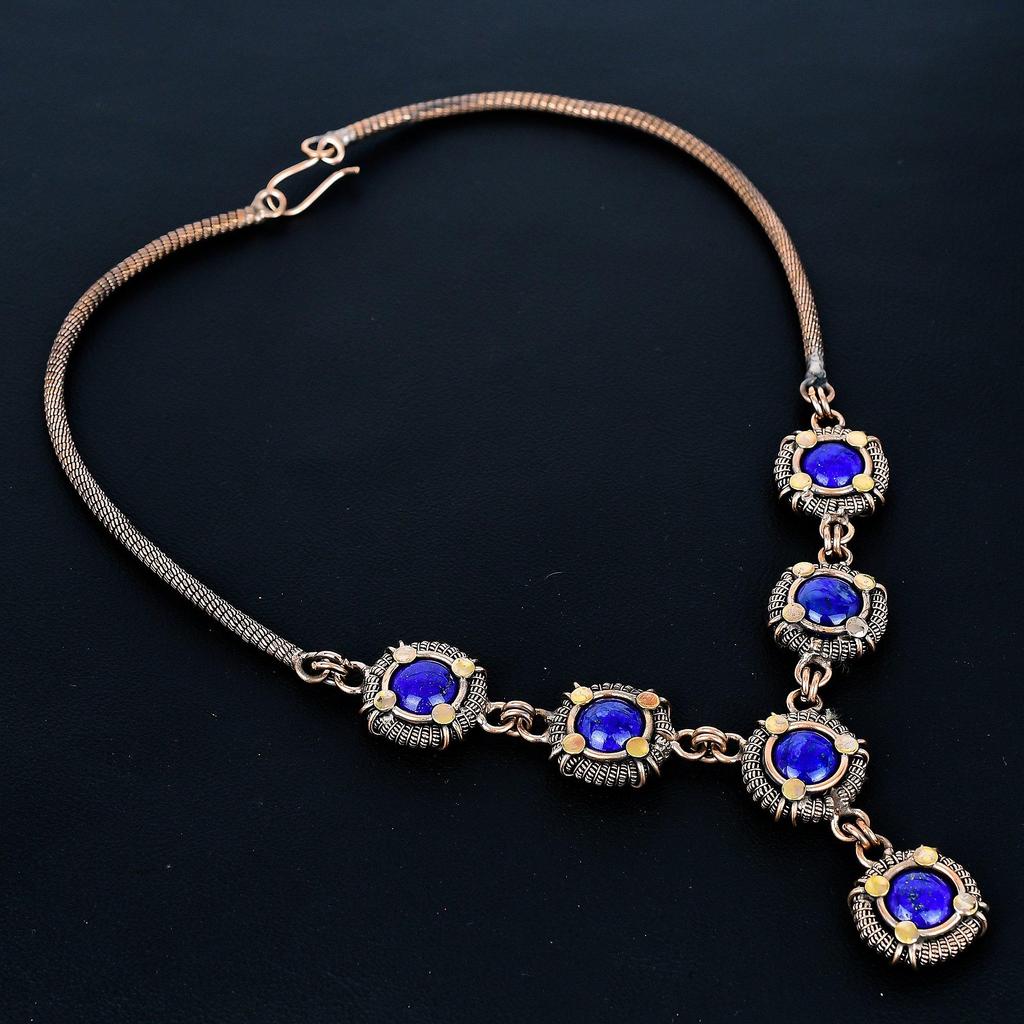 Blue Sapphire Necklace, 999 Copper Wire Wrapped Adjustable Chain Necklace. Gift For Women Handmade Necklace Gemstone Jewelry