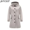 BITCED Autumn/Winter Water-Repellent Hooded Trench Coat Women's Casual Long Coat Loose Fit Plus Size Outdoor Rainwear