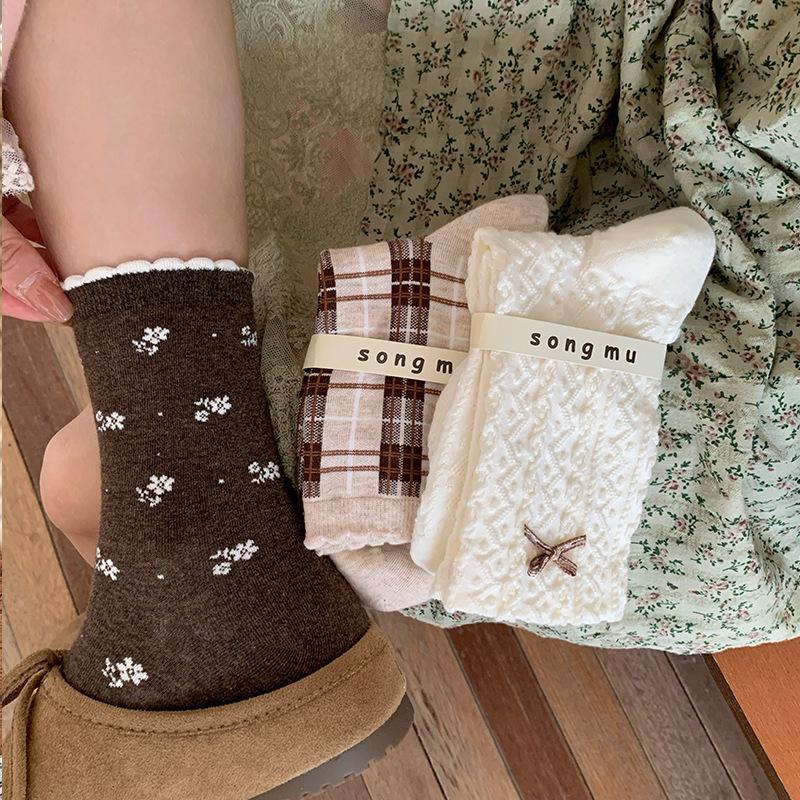 Women's Autumn Bow Boneless Mid Barrel Pile Socks