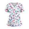 Plus SizePrinted Scrub Working Uniform Tops For Women's Cross V-Neck Halloween Print Short Sleeve Fun T-Shirts Workwear Tee With Pockets