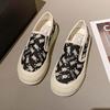 Little White Shoes Women's Spring 2025 New Versatile Breathable Canvas Shoes One Pedal Soft Sole Comfortable Platform Casual Shoes