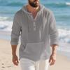 Men's Autumn and Winter New Linen Men's Long-sleeved T-shirt Loose Casual Simple Trend Home Hooded Henry Shirt