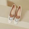 Black High Heels Temperament Is Not Tired Feet 2025 New Spring and Autumn Square Head French Rhinestone Square Buckle Thick Heel Shallow Mouth Sin