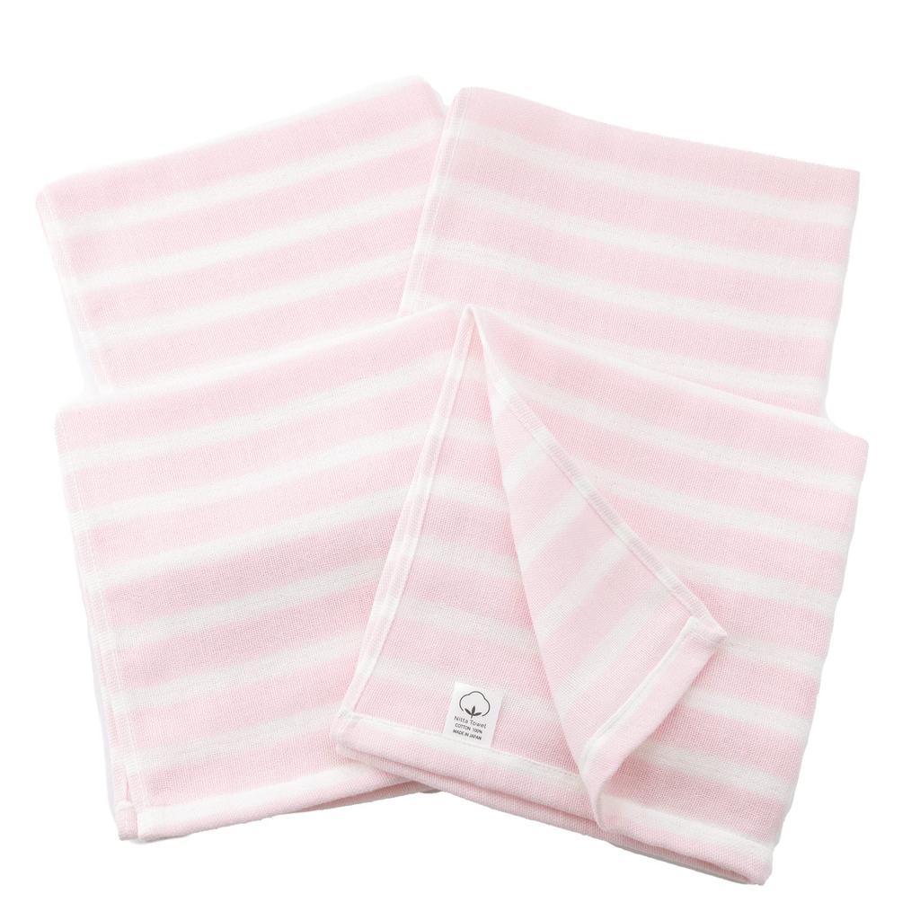 Mukotowel Gauze Border Hand Senshu Made In Set of Pale Pink Double-Ply Towels, Towels, Thin, Japan, Quick-Drying, 4,