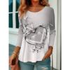Round Neck 3D Love Printed Top Casual Long Sleeved Women's T-shirts - Soft Medium Stretch Polyester Fabric Spring and Autumn Relaxed Fit Clothing