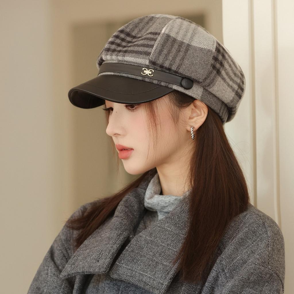 Octagonal Hat Female Spring and Autumn Duck Tongue Travel Sunshade Sunscreen Hat British Retro Breathable Beret