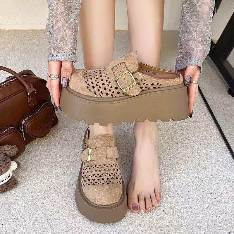 Thick Bottom Height Increase Small Birkencool Slippers Women's Summer Wear 2025 New One-pedal Hollow Bag Head Half Slippers