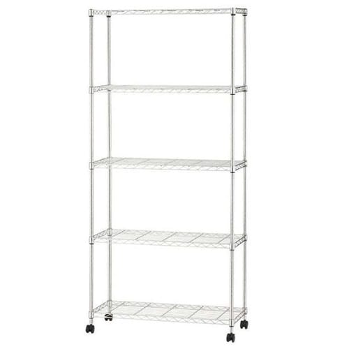IRIS OHYAMA Metal Shelf, 5-Tier, with Casters, Rust-Resistant, 19mm Pole Diameter, 80cm Wide X 35cm Deep X 174.5cm High, Silver, SEM-8018