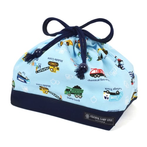 COLORFUL CANDY STYLE Lunch Bag for Boys, Medium Drawstring, Stylish and Cute with Gusset, Full Throttle Working Vehicle (Light Blue) N3469500