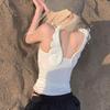 Summer Sexy Solid Color Angel Wing Decoration Lace Up Tank Top