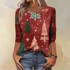 Women's Fashion Casual Christmas Tree Printed Round Neck Three-Quarter Sleeve T-Shirt Top
