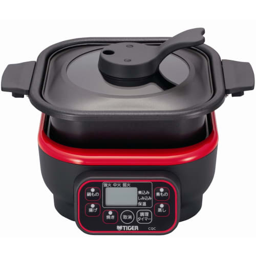 From Amazon ``Microcomputer Table Cooker'' with 5 functions in 1 Frying / Hot Pot Frying Easily cook fried food on the table using a dedicated guard and frying pan Equipped with a microcomputer, it automatically controls the temperature at approximately 180 degrees Power is automatically turned off 2 hours after pressing the button Hot Pot Convenient for boiling small pots and noodles High, medium, low heat, and keeping warm can be selected ``Microcomputer table cooker'' with 5 functions in 1 Bake, steam, simmer Bake Easy to grill and stir-fry Dishes High (approx. 200 degrees), medium (approx. 180 degrees), low heat (approx. 160 degrees), and keep warm (approximately 80 degrees) can be selected Power turns off automatically after 2 hours after pressing the button Steam You can enjoy steamed dishes using a special steaming plate High or low heat can be selected Simmer You can easily prepare stewed dishes that take time and effort. You can select ``Stew,'' ``Simmer,'' ``Stew + Simmer,'' or ``Keep Warm.'' ``Simmer'' is a course used when you want to further infuse flavor into the food after ``Simmering.'' Easily set with the touch of a button. ``Delicious temperature selection.'' Temperatures and settings can be freely selected with the touch of a button, so you can easily cook simmered, grilled, and fried foods without making any mistakes. There is also a cooking timer button, so you can set the cooking time. Ease of use of the microcomputer table cooker Easy-to-use "lid can be placed vertically" structure Can be washed, except for the main unit and outlet Comes with an easy-to-use "cookbook" Makes full use of the microcomputer table cooker Full of recipes that can be used for everyday cooking and home parties Delicious cooking with easy button operations Color variations Tomato red CQC-A070RT Cream white CQC-A070WR