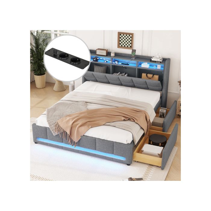 Lit - MUVOE - 140 X 200 Cm - Rangement Intégré - Éclairage LED - Prise USB