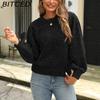 BITCED Autumn/Winter Sparkling Silk Bubble Sleeve Sweater Luxurious Back Tie-Detail Long-Sleeved Knitted Sweater