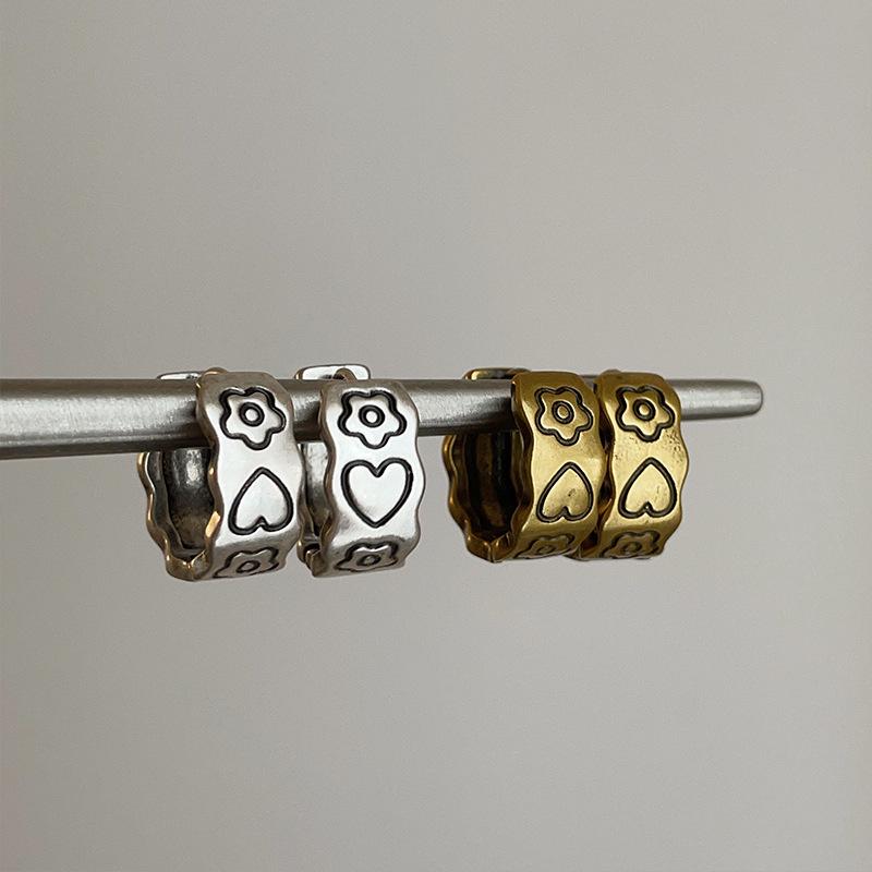 Vintage Heart & Flower Embossed Metal Ear Cuffs for Women