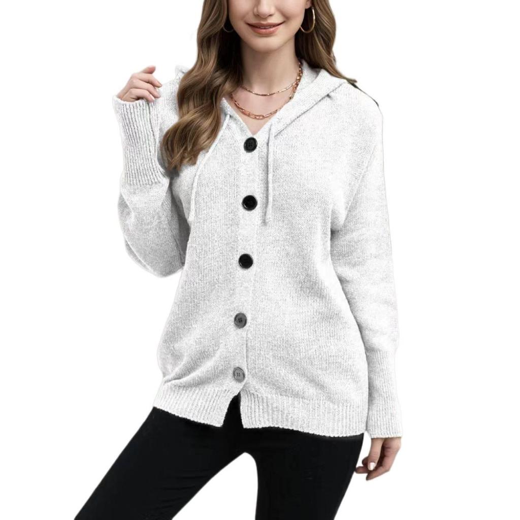 New Single-Breasted Hooded Cardigan Sweater Women's Autumn and Winter V-Neck Solid Color Knitted Sweater