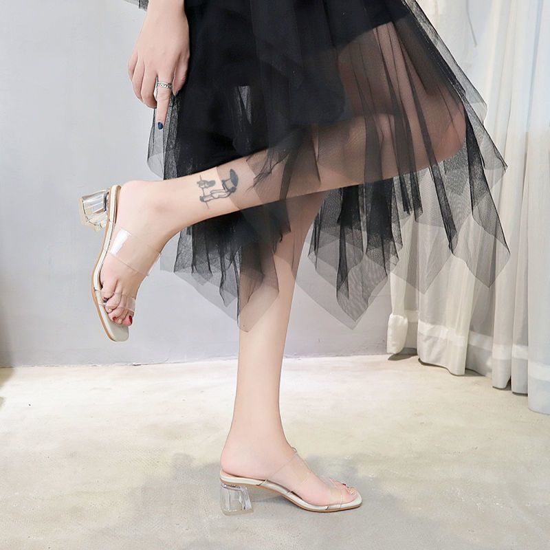 Transparent New Internet Celebrity Sandals Women's Slippers 2025 Summer Low Heel Sandals Thick Heel French High Heels