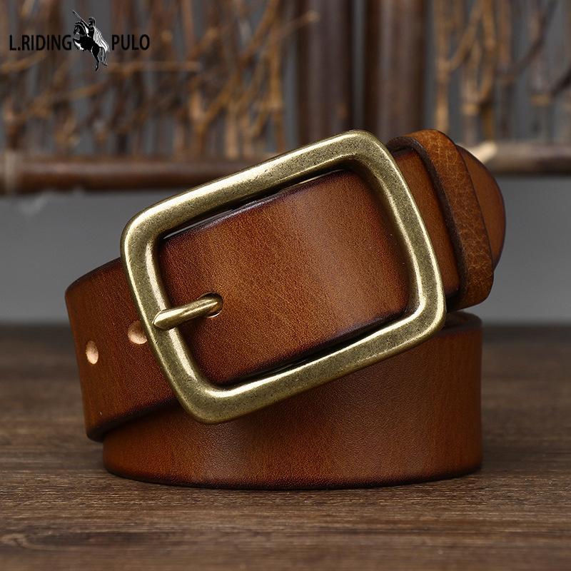 Men's Vintage Vegetable Tanned Leather Belt Brass Buckle Youth Belt Men's Casual All-Matching Trendy
