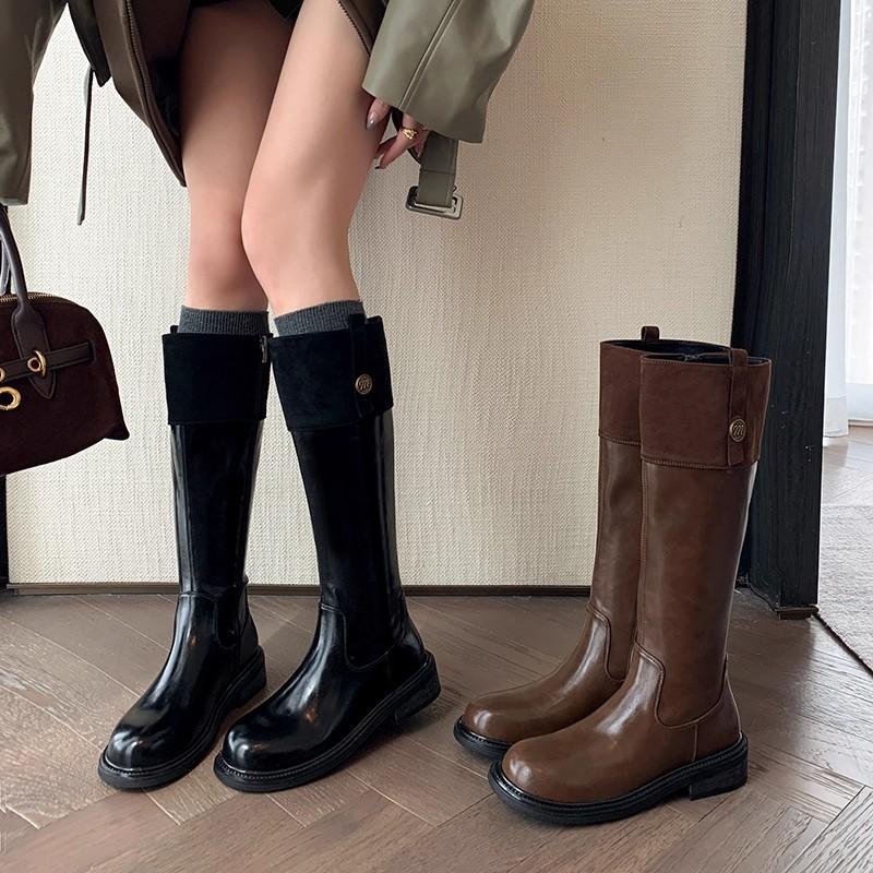 Maillard Retro Splicing Boots Women's 2025 Autumn New Velvet Thick-soled Boots But Knee Boots Knight Boots.